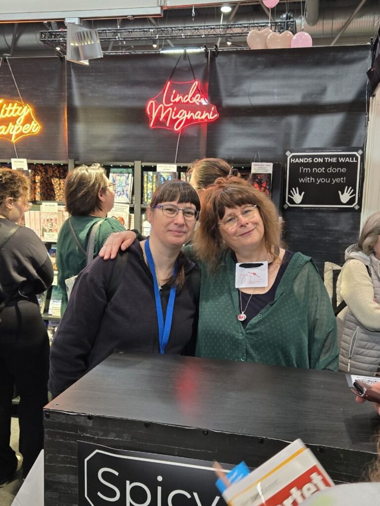 Samstag waren wir früher da und auch schon um 10 direkt in den Hallen. Wir hatten uns für den Tag zwei Lesungen ausgesucht. Die erste zum Thema „Was darf Spicy Romance“ mit Margaux Navara, Linda Mignani, Kitty Harper & Katie McLane.