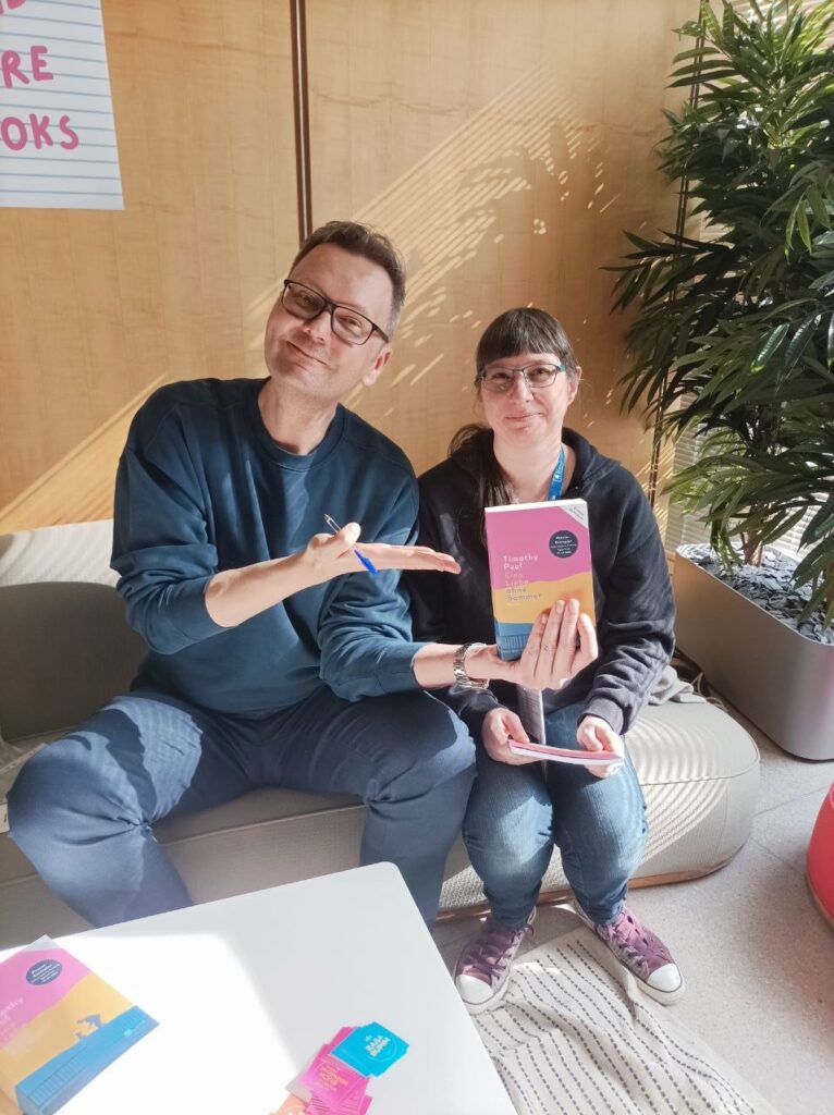 Wir sind zuerst durch die Hallen 4 und 5 geschlendert. Um 13 Uhr durfte ich bei BL:OOM der unterhaltsamen Lesung von Timothy Paul zuhören und sein neues Buch mit nach Hause nehmen.